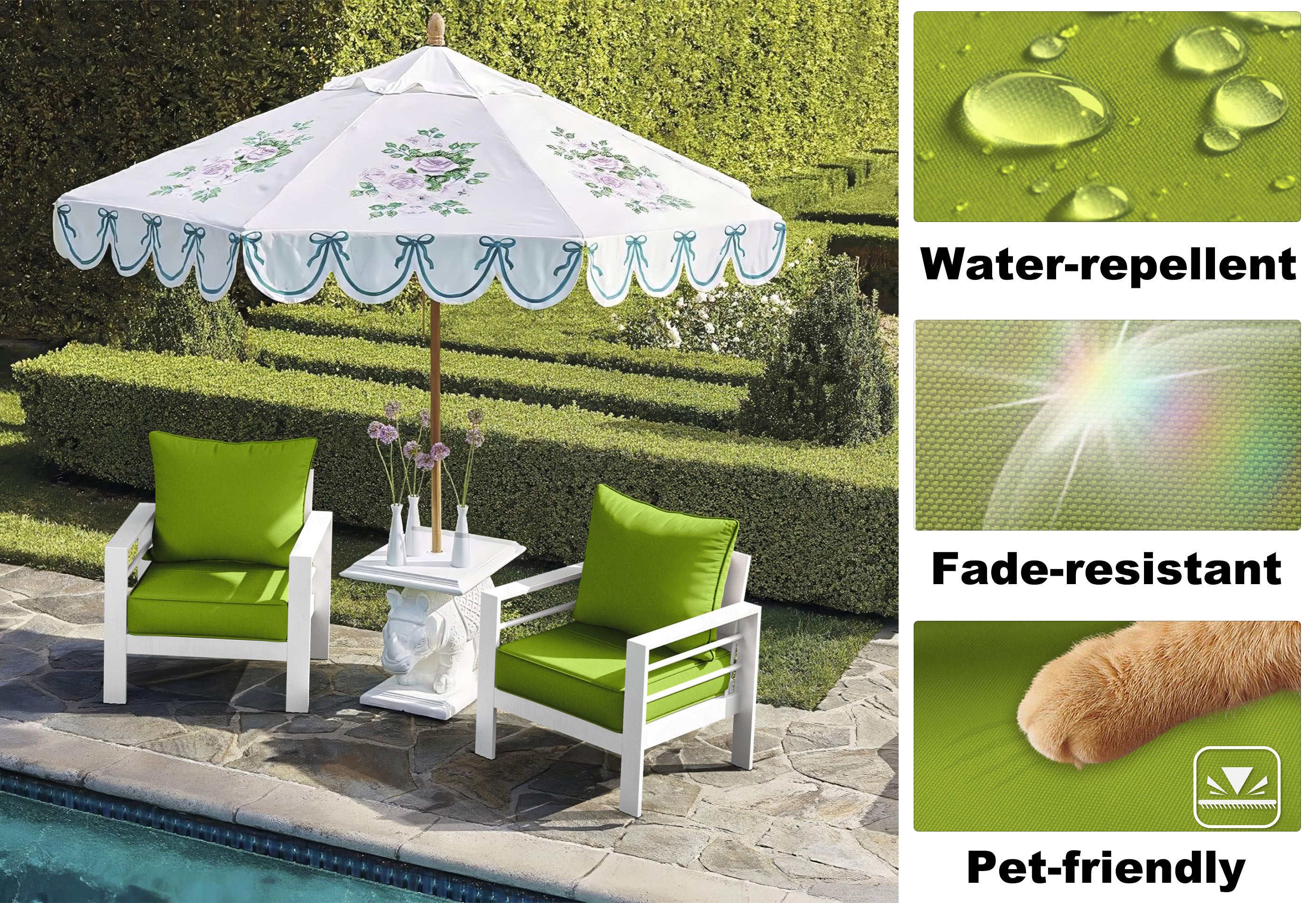 Cushion Cover: Polyester, outdoor fabric
