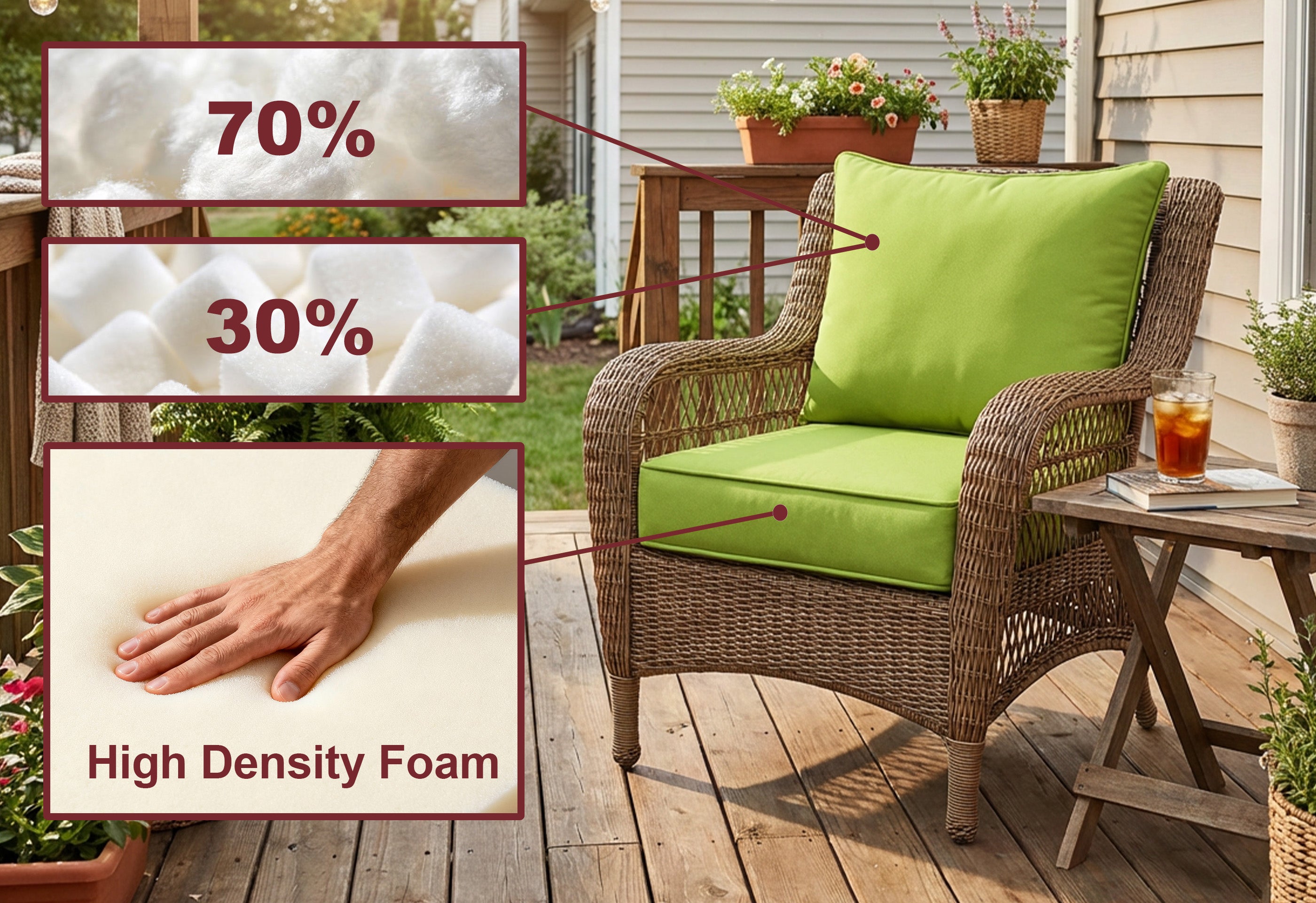Transform your outdoor living space with our 6-pack of deep seat cushion pillow set. This worthy set is designed for larger sectional or patio furniture, offering full coverage with unmatched comfort. Made from high-density foam and durable, UV-resistant fabric, these cushions are built to withstand the elements while providing plush support for extended sitting. Whether you're hosting a gathering or relaxing outdoors, this set brings both style and durability to your patio or garden.